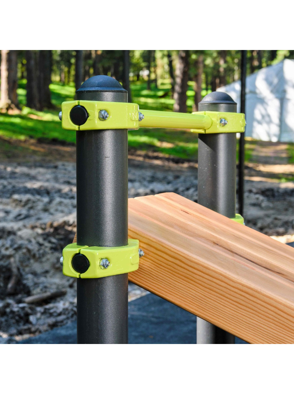 W308 Воркаут Наклонная скамья для упражнений на пресс ZAVODSPORTA 0 отзывов 60562р. Оптовая цена: 48450р. для покупки по оптовой цене свяжитесь с нами по телефону Производитель: ZSO Наличие: Предзаказ Модель: 8915b829-f8f5-11ec-baa3-00155d686707 Одежда Обувь Как выбрать одежду своего размера? Купить Купить в один клик Скидки постоянным клиентам! Гарантия качества всех товаров магазина! Описание Отзывов (0) Уличная наклонная скамья для упражнений на пресс ZAVODSPORTA* предназначена для установки на уличных спортивных площадках с учетом интенсивной эксплуатации в разных климатических условиях. Опорные столбы выполнены из металлической трубы диаметром 108 мм с толщиной стенки 3,5 мм. В состав комплекса входят четыре опорных столба: два высотой 1700 мм, два высотой 900 мм. Торцы опорных столбов оборудованы пластиковыми заглушками. Перекладина выполнена из металлической трубы диаметром 34 мм с толщиной стенки 3,2 мм. Основание скамьи 1500?415 100 мм выполнено из древесины хвойных пород, предварительно высушенной до нормативной влажности и покрытой износостойким лаком. Такое покрытие формирует прочную защитную плёнку, устойчивую к ультрафиолетовому излучению, влаге и перепадам температур, что продлевает срок службы древесины при круглогодичной эксплуатации на открытом воздухе. Элементы фиксируются к опорным столбам с помощью надёжных металлических хомутов с болтовым соединением. Конструкция хомутов обеспечивает прочную посадку и равномерное распределение нагрузки, а самоконтрящиеся гайки М10 предотвращают самопроизвольное ослабление креплений в процессе эксплуатации. Металлические элементы покрыты цинкосодержащим грунтом, формирующим антикоррозийный слой в результате химической реакции компонентов грунта с металлом, а затем — порошковой краской, запечённой в печи полимеризации. Металлические элементы ударопрочны, высокоустойчивы к температурным перепадам и метеорологическим явлениям. Надёжность и прочность разъёмных соединений конструктивных элементов тренажёра обеспечиваются за счёт использования высококачественного оцинкованного крепежа. При изготовлении деталей на высокоточных станках лазерной резки используется технология шип-паз. Это создает точные линейные размеры, точность позиционирования деталей в сборочных узлах и стабильность размеров конструкции тренажера. Цвет опорных столбов: графит (другие цвета опционально). Цвет элементов: pantone 382C (другие цвета опционально). Габариты: 1467?792?1145 мм. Вес: 97 кг. Производитель: ZAVODSPORTA. Производитель оставляет за собой право (без предварительного уведомления) на внесение изменений в конструкцию, комплектацию или технологию изготовления тренажера для улучшения эксплуатационных качеств. Оборудование монтируется путем бетонирования опорного столба на глубину 1000 мм и отсыпается песчано-гравийной смесью до уровня площадки (не менее 200 мм). Монтажные схемы прилагаются к комплекту поставки. ?*ZAVODSPORTA — российский производитель коммерческого спортивного оборудования, соответствующего требованиям государственных и муниципальных закупок. Продукция завода отвечает стандартам, предусмотренным федеральными законами № 44-ФЗ и № 223-ФЗ, что позволяет успешно участвовать в тендерных процедурах и поставлять оборудование для бюджетных учреждений. Труба: 108?3,5 мм Материал: металл, древесина Цвет рамы: графит (другие ц